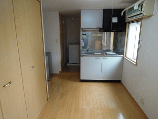 | お部屋は広いワンルームタイプ(台所とお部屋の区切りなし) 工夫次第で快適生活 | ||