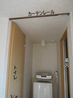 | 暖房便座トイレ | カーテン付ければ脱衣所 | お風呂 | まな板置けるスペースあり |