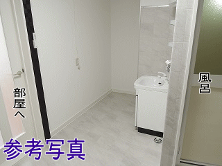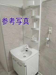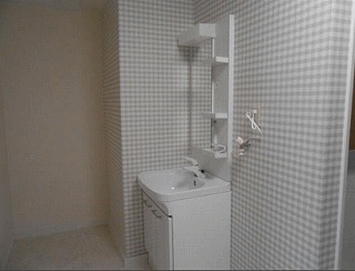 | 洗面台スペース ランドリー棚など置けそうな広さです 202号室は壁紙はチェック柄です | ||
