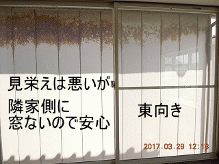 東向き窓は隣家の壁 日光は入りませんが窓ないので安心 |