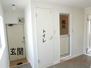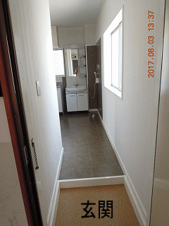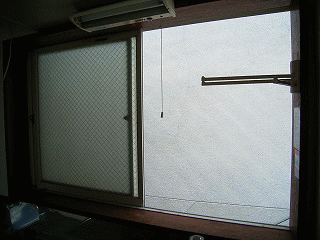 | 部屋の横窓の外 大光銀行の壁 | キッチンシンク窓の外 大光銀行の壁 | 玄関入ってすぐの窓 海方向北向き |